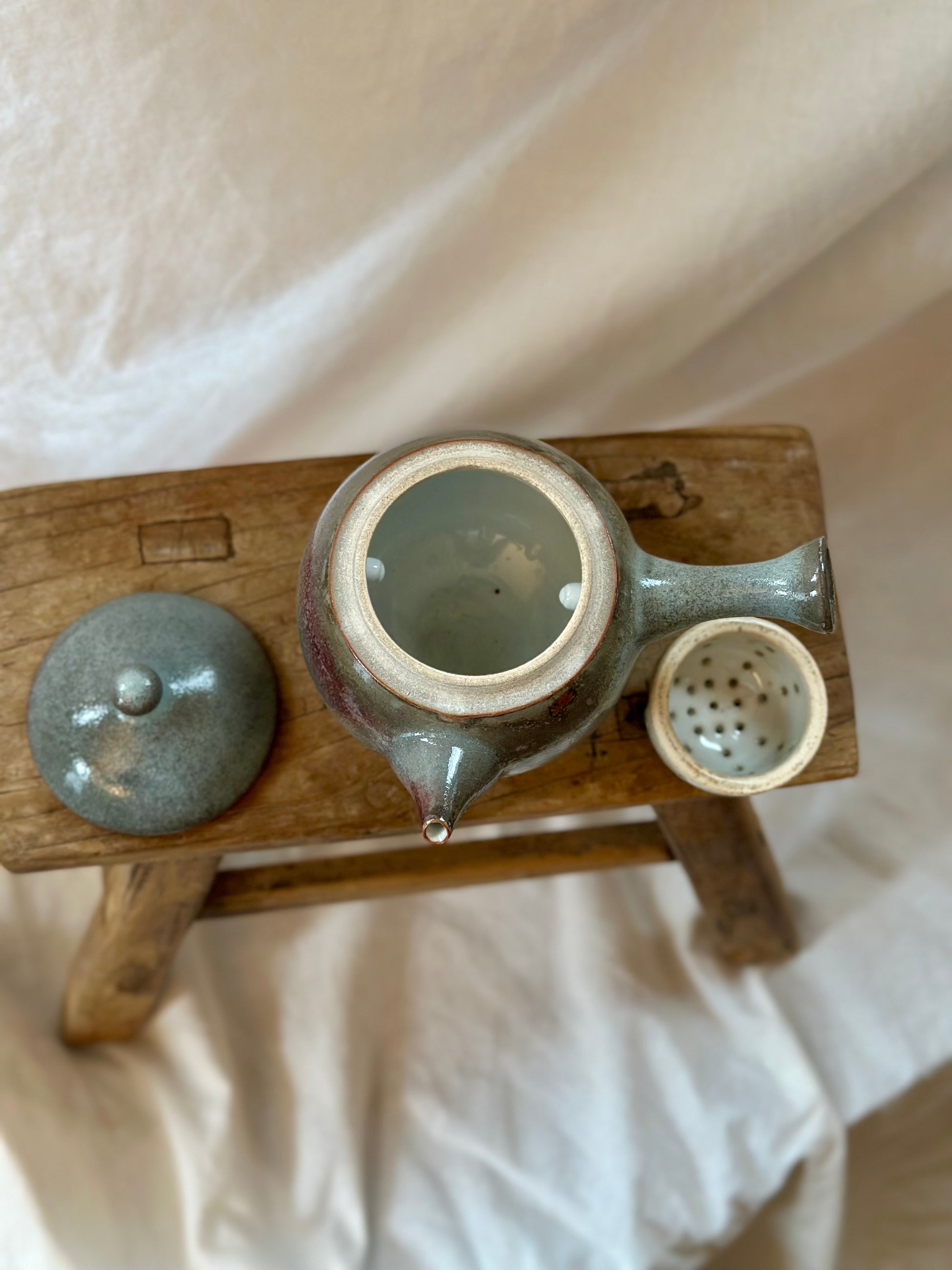 This handmade teapot, made in Chicago, is the perfect way to brew loose leaf tea. Simply place the loose-leaf tea of your choice in the removable swivel tea basket and add hot water at the desired temperature. Pour enough water so that most of the tea leaves are submerged, but do not exceed the height of the tea strainer. Coarse loose-leaf tea is recommended. This teapot is carefully handmade, resulting in a unique and one-of-a-kind piece. While slight irregularities or blemishes may occur, it only adds to its charm.